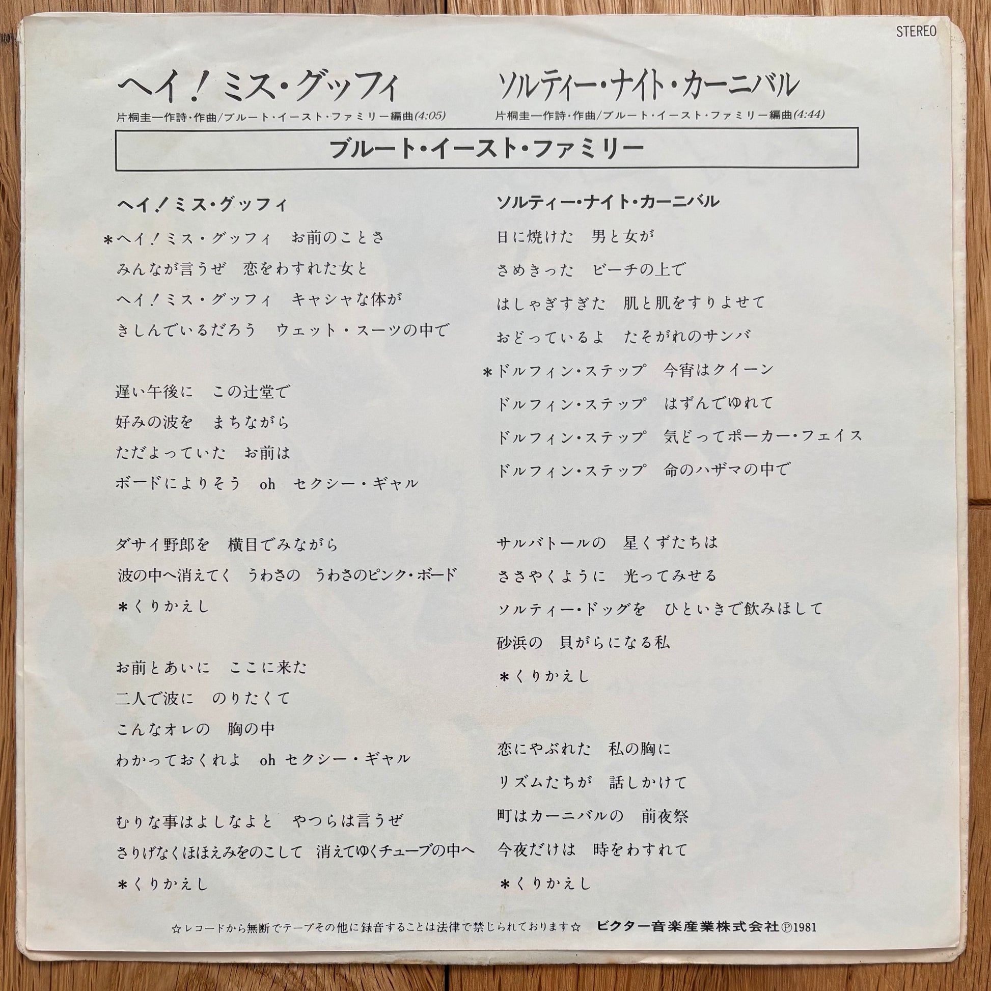 Brute East Family “Hey Miss Kuffi” c/w “Salty Night Carnival” (1981)