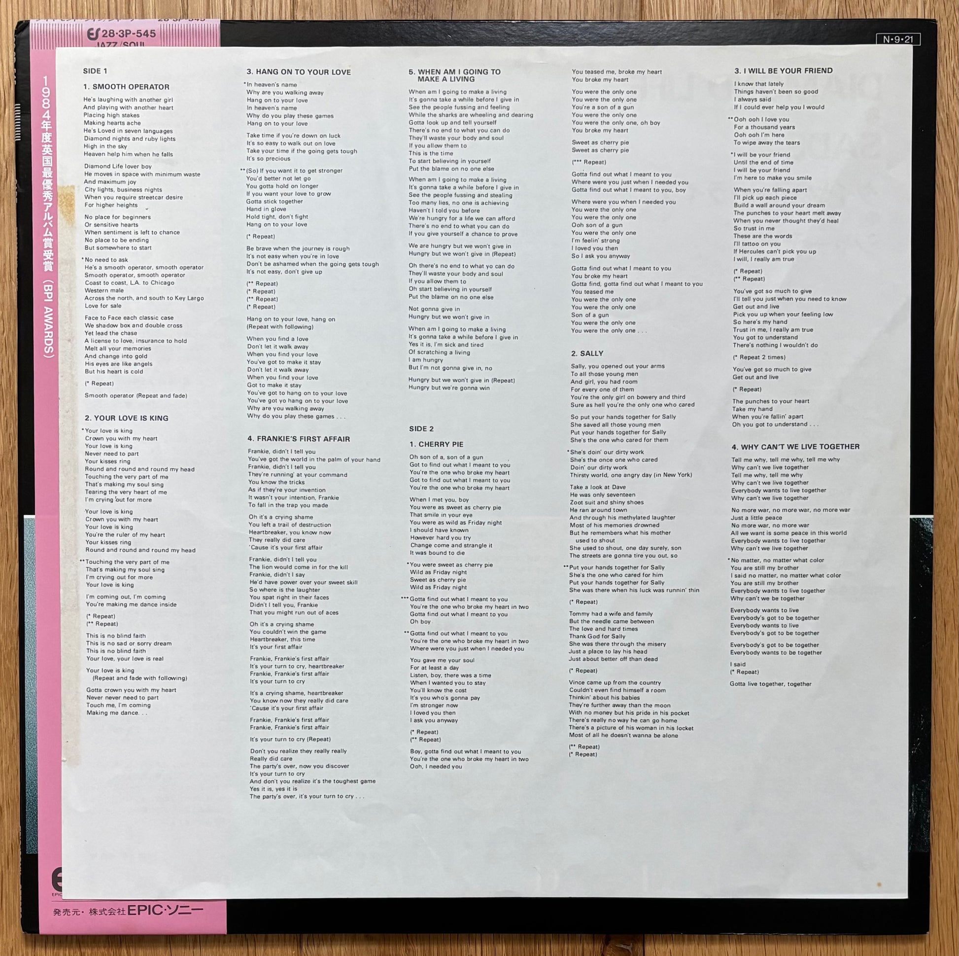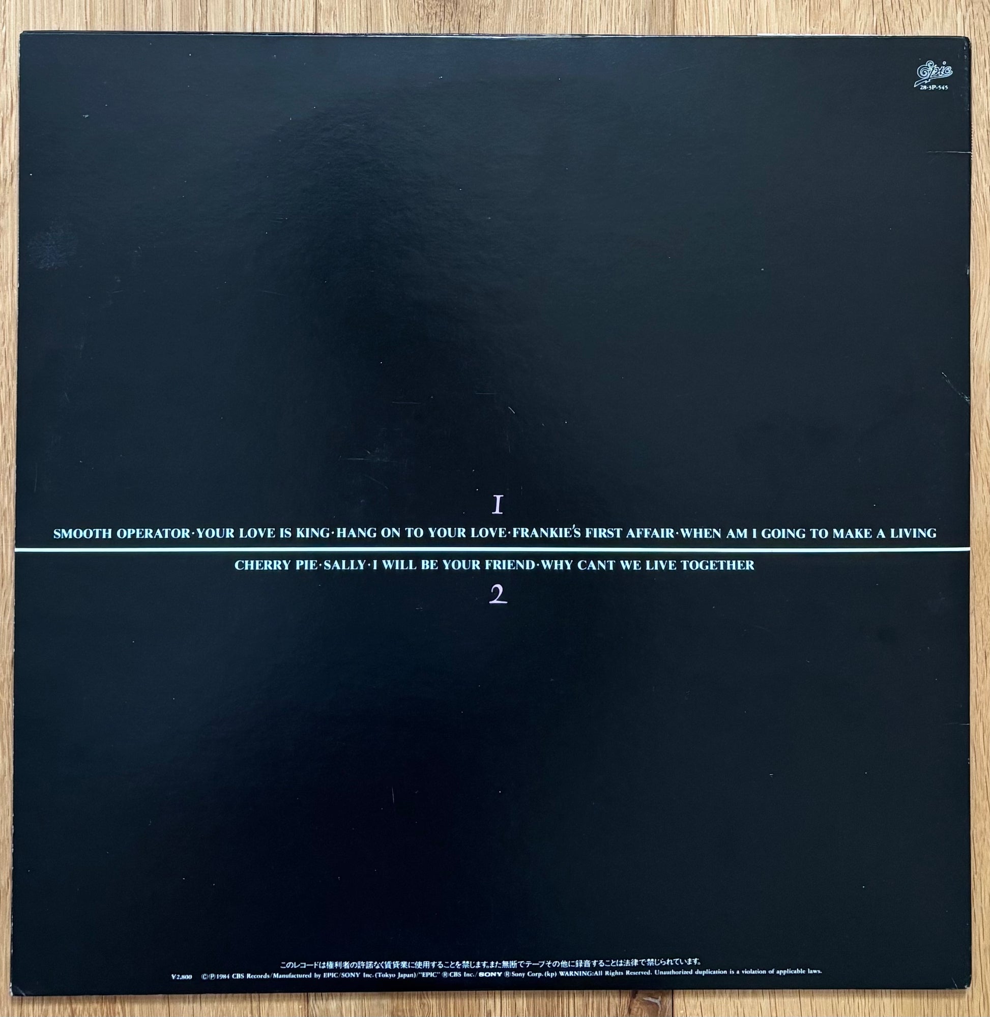 Japanese press. Classic LP loaded with some great tunes including "Smooth Operator". Not much else needs to be said. |
