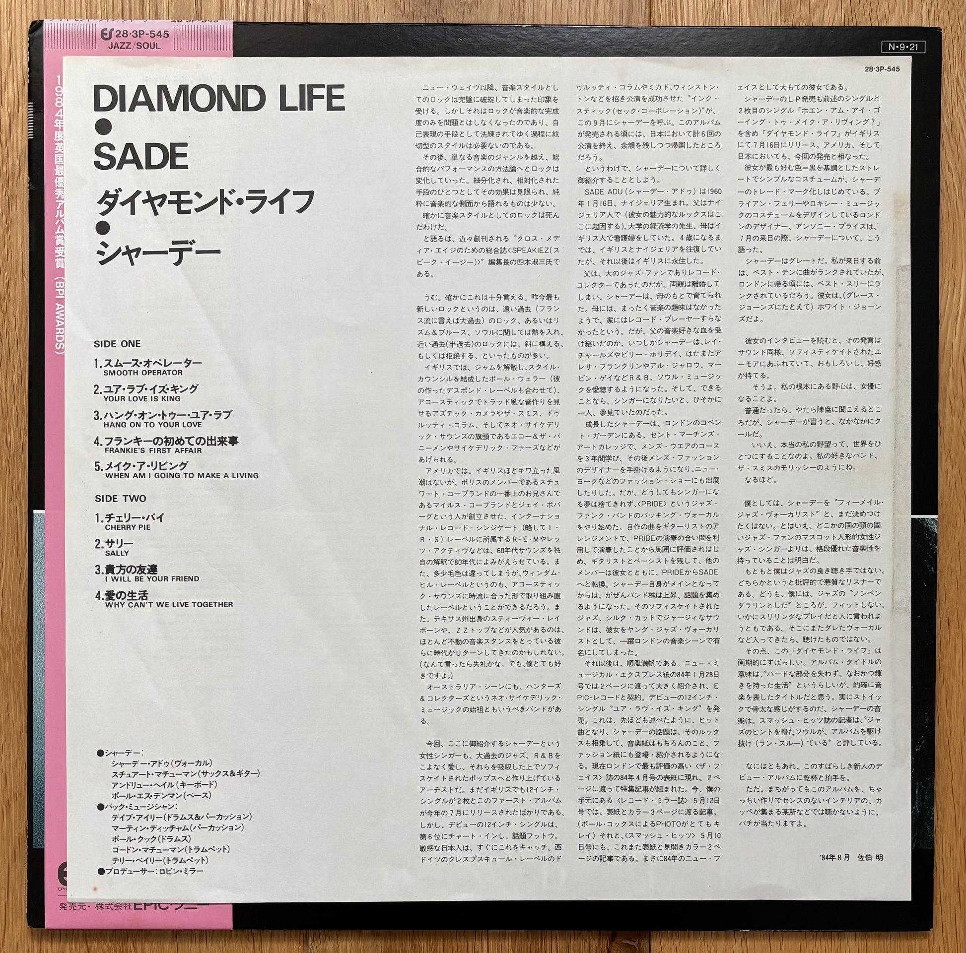 Sade “Diamond Life” (1984) Japanese Press